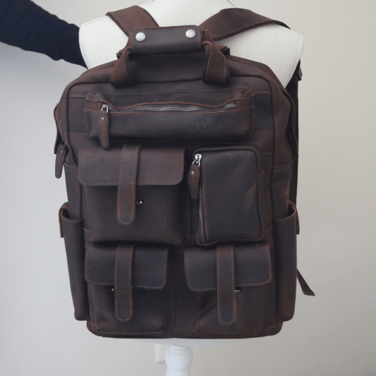 Custom Made Vintage and Vault Full Grain Leather Backpack with Multiple outer Pockets